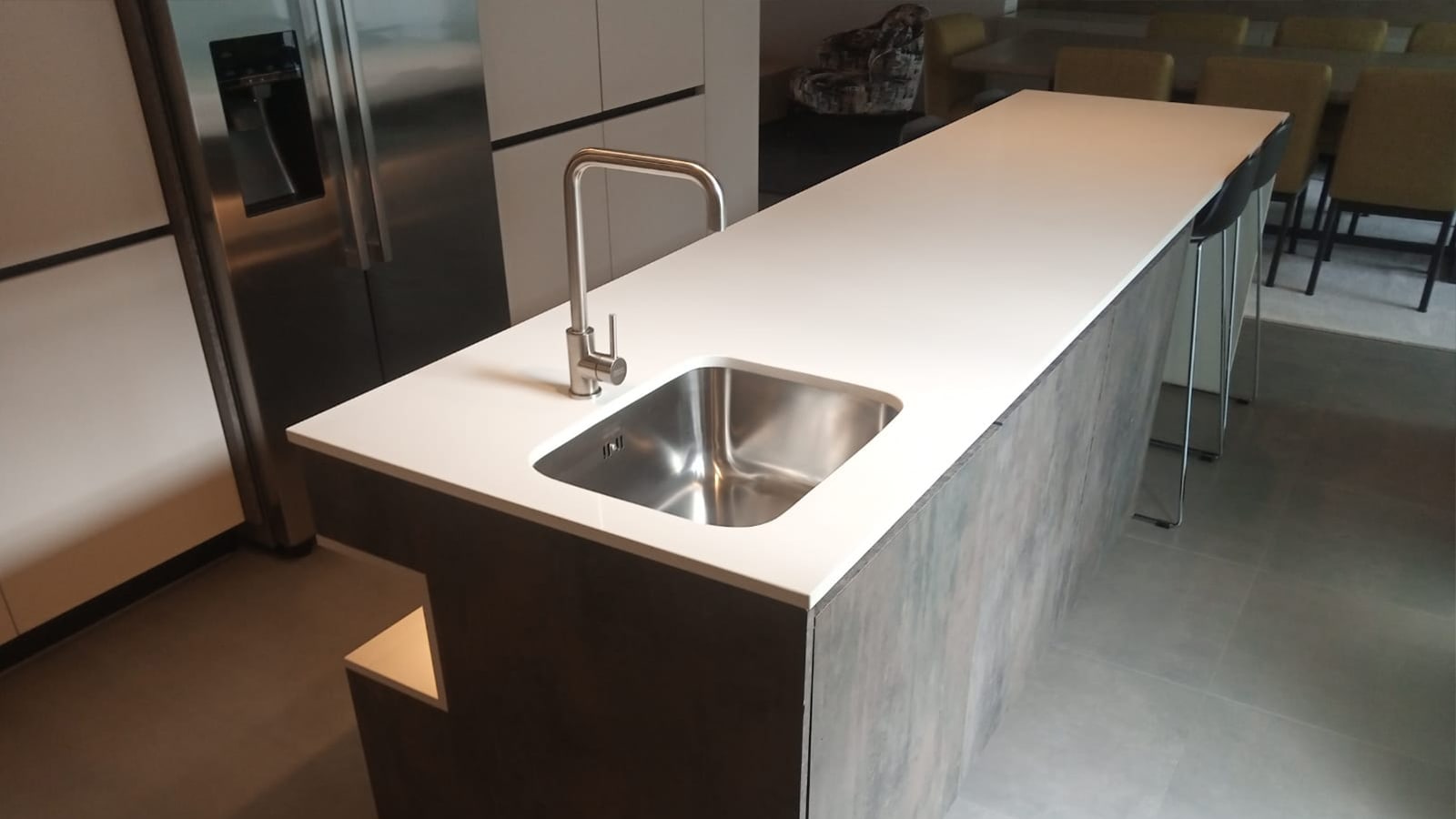 Encante-se com uma cozinha meticulosamente planejada, envolta em aglomerado laminado de alta qualidade, destacando-se com um imponente topo em mármore branco, proporcionando uma atmosfera de luxo e refinamento incomparáveis.